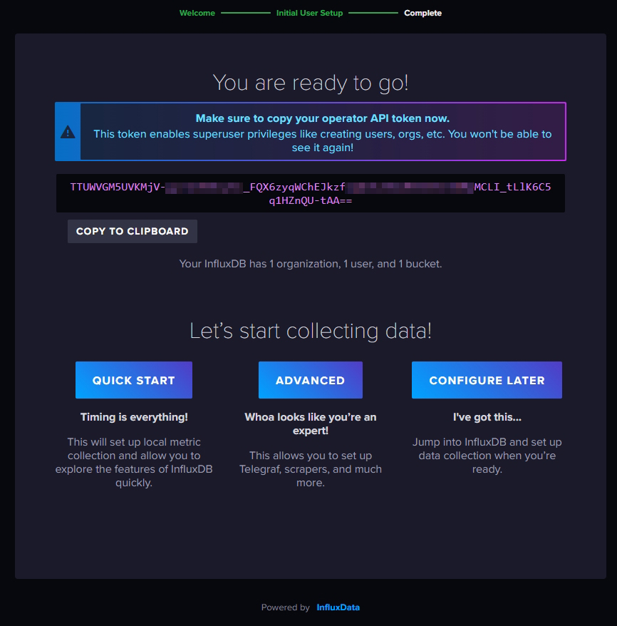 Installation von InfluxDB abgeschlossen!